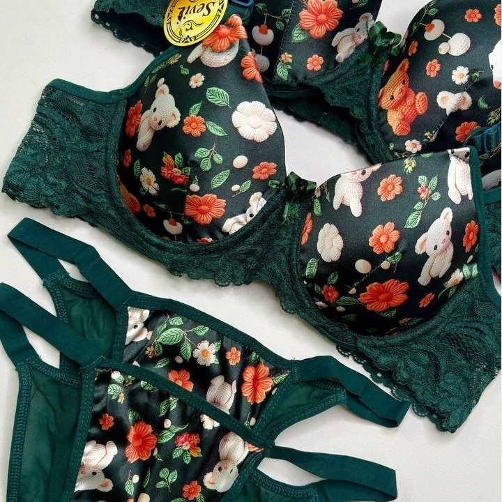 ست شورت و سوتین اسفنجی ساتن 3بعدی شورت پشت تور و فاق نخی سایز 75 تا 90 در 4 رنگ زیبا و جذاب