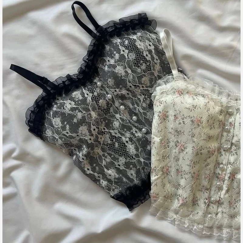ست شورت و سوتین تور شیشه ای گلدوزی دار بابونه از تولیدی