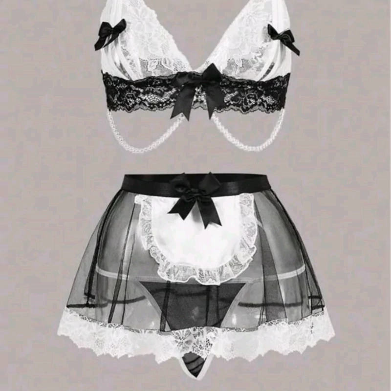ست شورت و سوتین فانتزی دانتل با گاتر دور کمر وارداتی درجه 1
